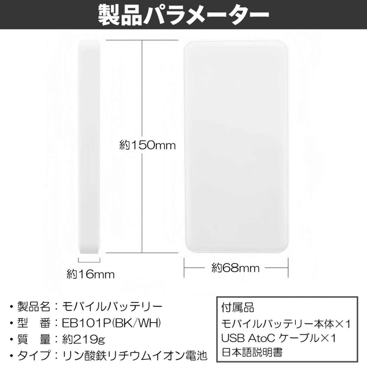 【大容量で長時間使用可能】 このモバイルバッテリーは10000mAhの大容量で、スマートフォンやタブレットを何度も充電できます。